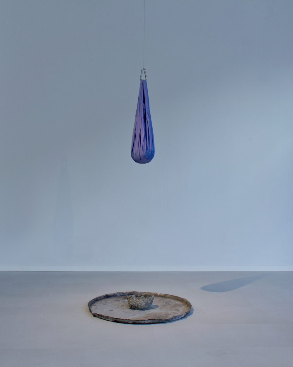 The materials used in the exhibition include clay, plywood, aluminium, water, fabric, lavender and gravel. The works depict the movement and rhythm generated by communication, reminding us how materiality is having an influence and being influenced everywhere.